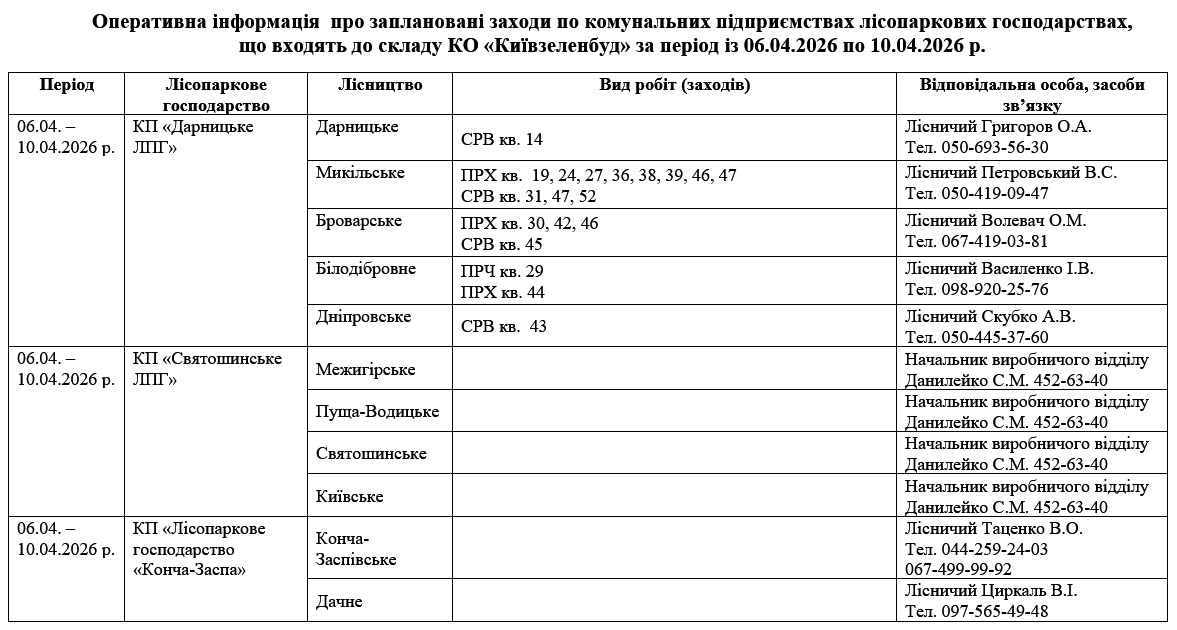 Плани робіт тижневі 06.04.2026 – 10.04.2026